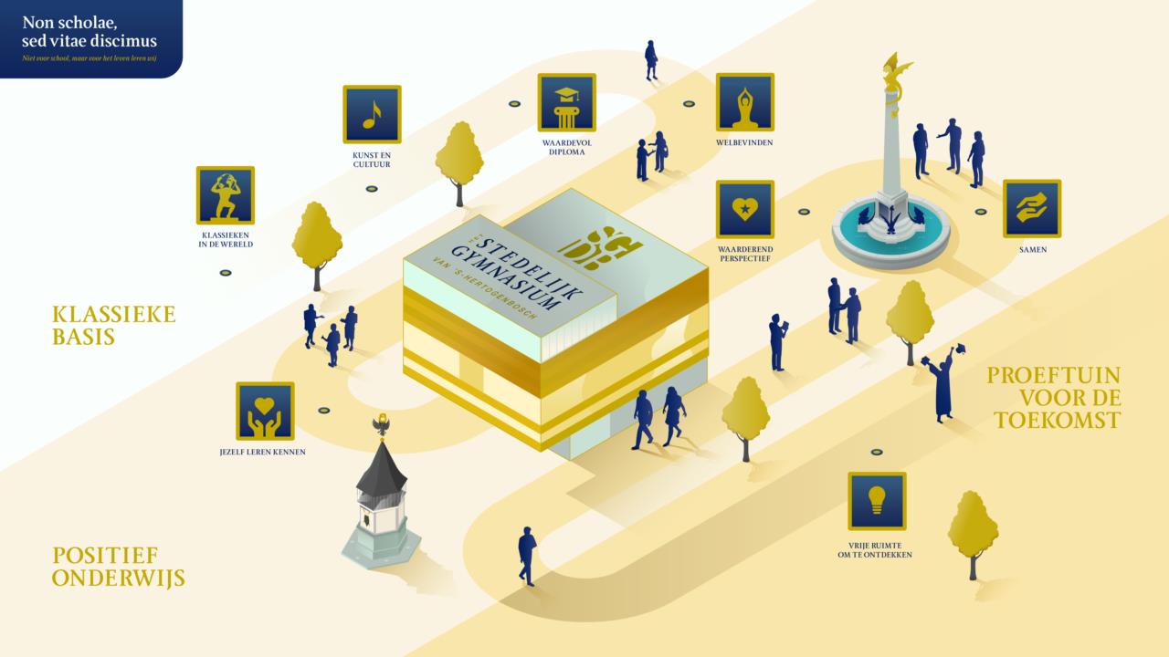 Het SGDB is onderdeel van stichting OSZG (Onderwijsstichting Zelfstandige Gymnasia). De kernwaarden van deze stichting zijn uitgebeeld in onderstaande infographic. Bekijk hier een grote versie met toelichting.