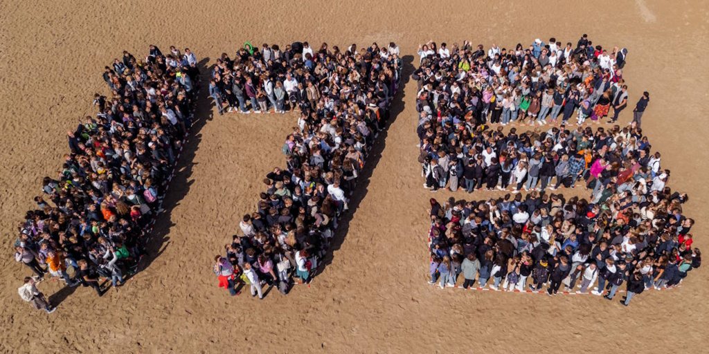 Schooljaar 2023-2024 is het 175ste schooljaar van het SGDB. Dat moest natuurlijk gevierd worden. Op woensdag 30 augustus 2023 vertrok de hele school in een grote kolonne bussen naar Scheveningen. Hierbij maakten we een heel bijzondere luchtfoto en bezochten we de musical AIDA in het AFAS Circustheater in Scheveningen.