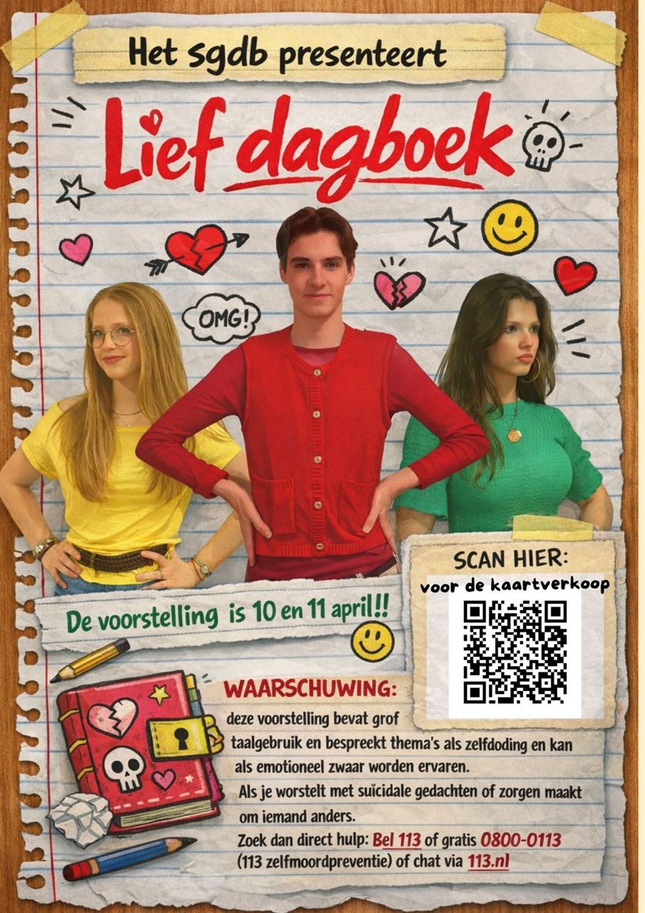 Het Stedelijk Gymnasium ’s-Hertogenbosch presenteert in 2026: Lief Dagboek. Op 10 en 11 april brengen leerlingen deze musical tot leven met alles erop en eraan: live orkest, zang, licht & geluid, die de zaal omtoveren tot één grote belevenis.